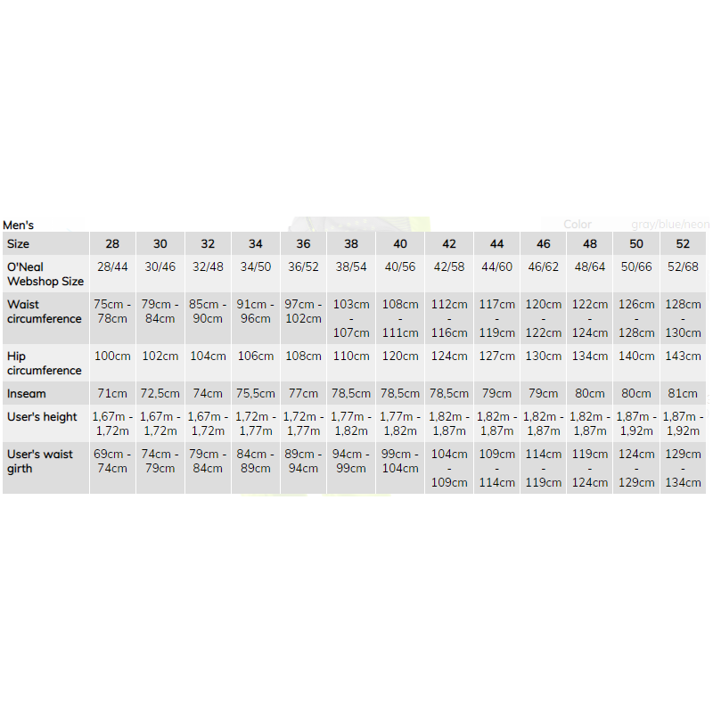 Штаны O`NEAL ELEMENT FACTOR (36/52) (Grey/Blue/NeonYellow)