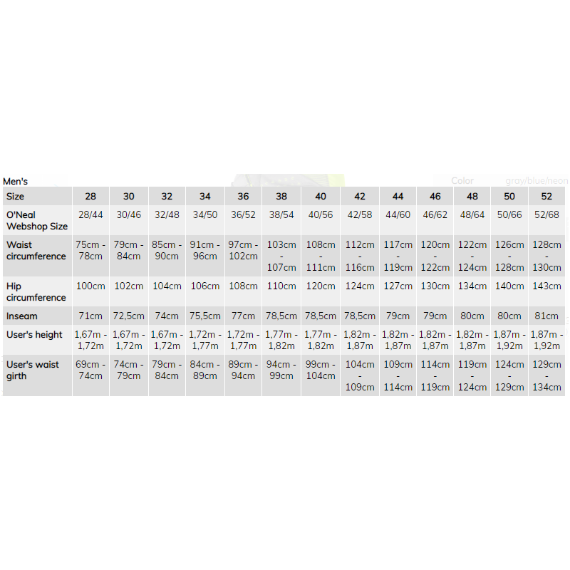 Штаны O`NEAL ELEMENT FACTOR (40/56) (Grey/Blue/NeonYellow)